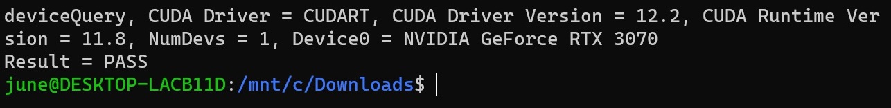 - 그 후 WSL2에서 NVIDIA의 CUDA와 cuDNN을 설치하고 정상적으로 설치되었는지 체크합니다.