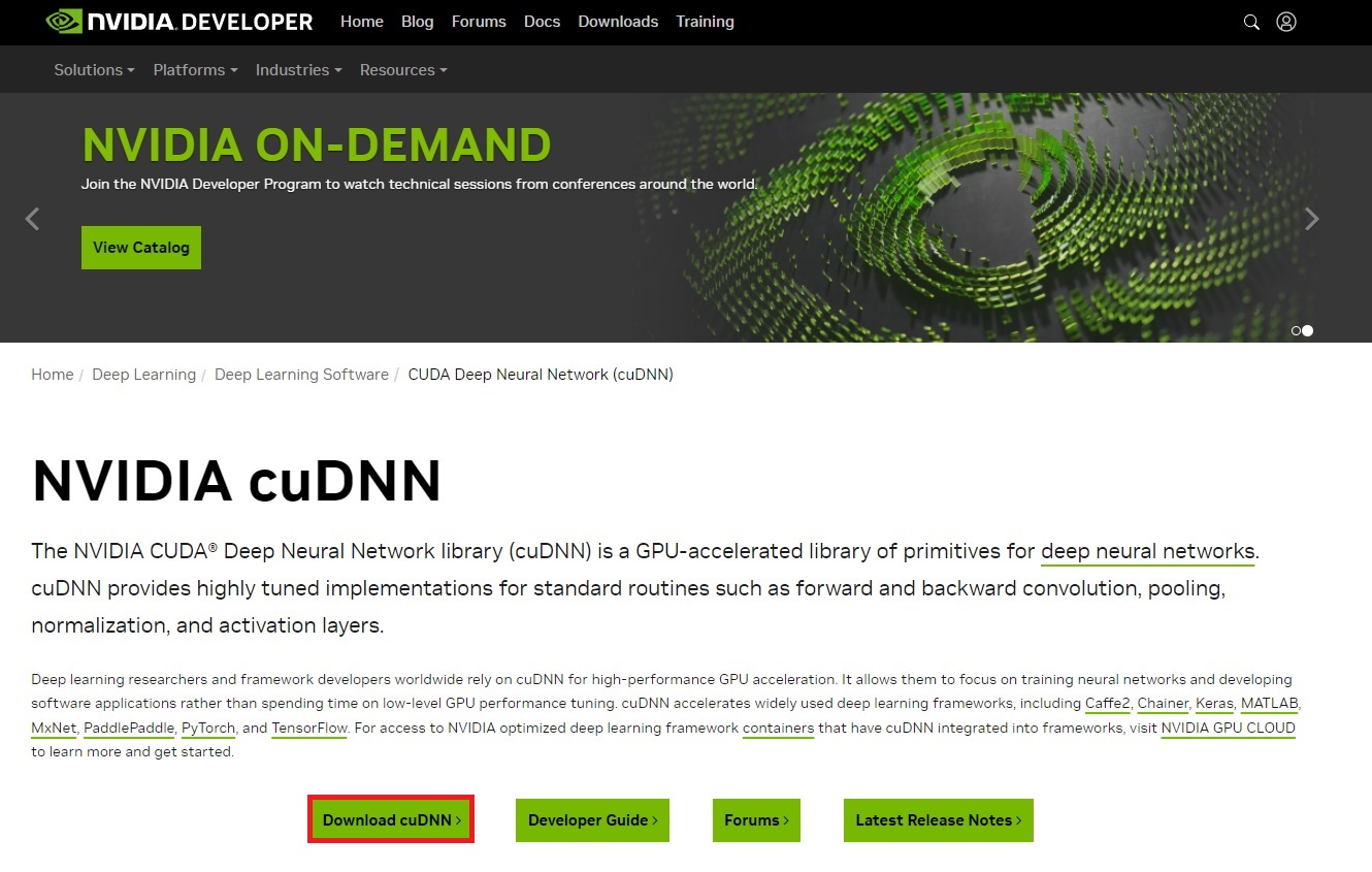 - cuDNN은 CUDA 기반 딥러닝 라이브러리입니다.