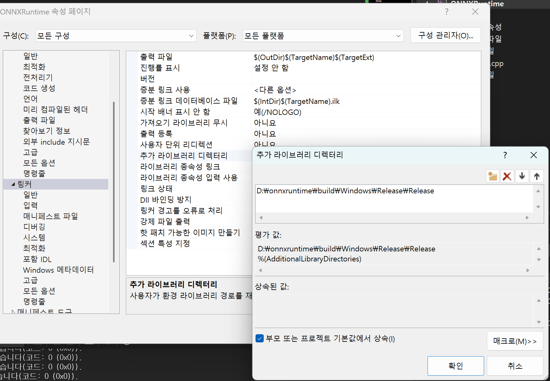 2. 링커 - 일반 - 추가 라이브러리 디렉터리 - [onnxruntime_소스경로]\build\Windows\Release\Release 추가.