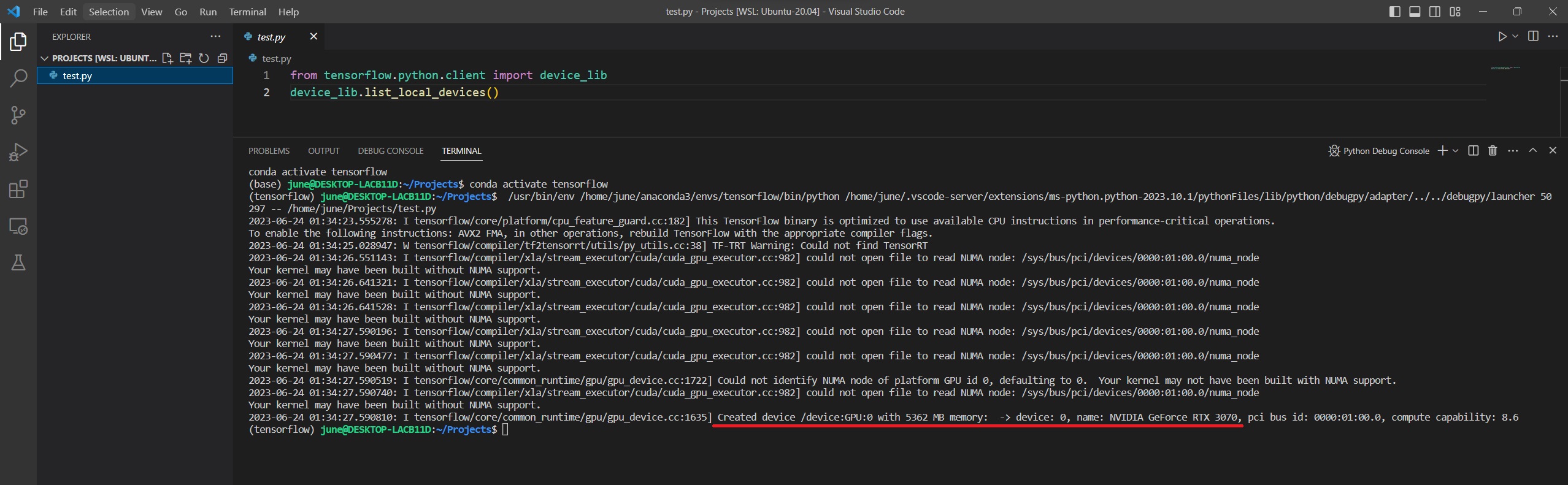 2.0.9 버전을 사용하면 WSL2 같은거 설치 안해도 VSCode에서 바로 쓸 수 있겠지만 언젠간 WSL2를 이용해 Tensorflow 환경을 구축하게 될 것같아서 해봤습니다.