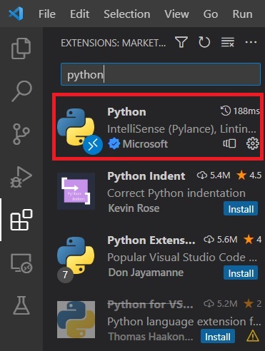 • VSCode에서 좌측에 Market을 들어가 wsl과 python을 설치합니다.