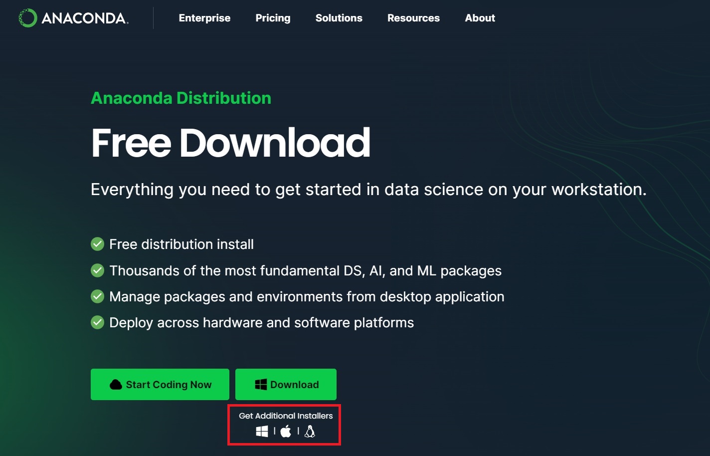 •  Anaconda 설치를 위해 아래 사이트로 들어갑니다.