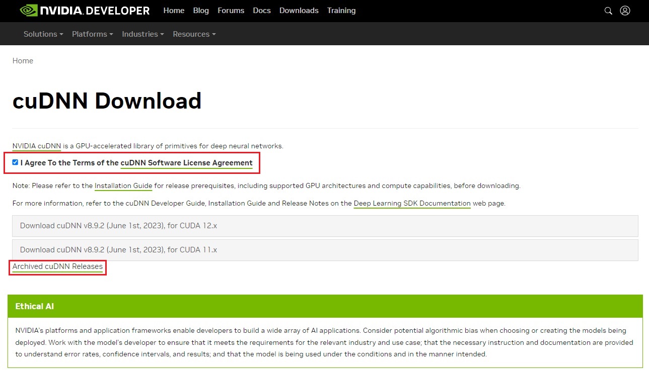• 먼저, NVIDIA 회원가입을 합니다. 이후 아래 그림과 같이 진행하여 버젼에 따라 cuDNN 파일을 다운로드 받습니다.
